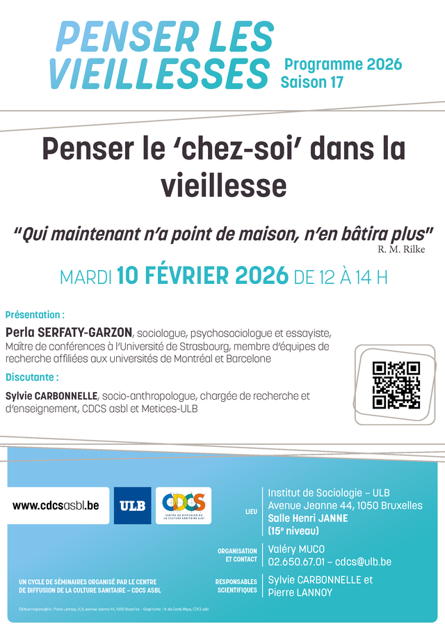 « Et vous croyez que tout le monde habite ? Vous croyez que tout le monde a des maisons ? ». Le chez-soi - et la culture du domicile dans laquelle il s’inscrit - émerge d’évolutions sociales relativement récentes. Il s’affirme aujourd’hui comme une valeur sociale. En quels termes ? Avec quelles conséquences pour penser l’habiter dans la vieillesse ? P. Serfaty abordera ces questions à partir du double regard – en intériorité et en extériorité – qu’elle pose sur la vieillesse, regard qui la conduira à parler, d’une part, du temps subjectif, de la singularité du sujet, de l’adéquation entre la singularité d’un être et celle de l’espace qu’il appelle sa maison, et, d’autre part, de la confrontation entre ces notions et ce que la société véhicule d’idées sur l’âge.